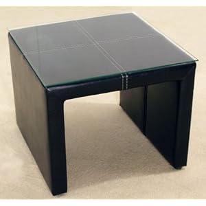 Black Faux Leather Lamp/End/Coffee Table with Glass Top review
